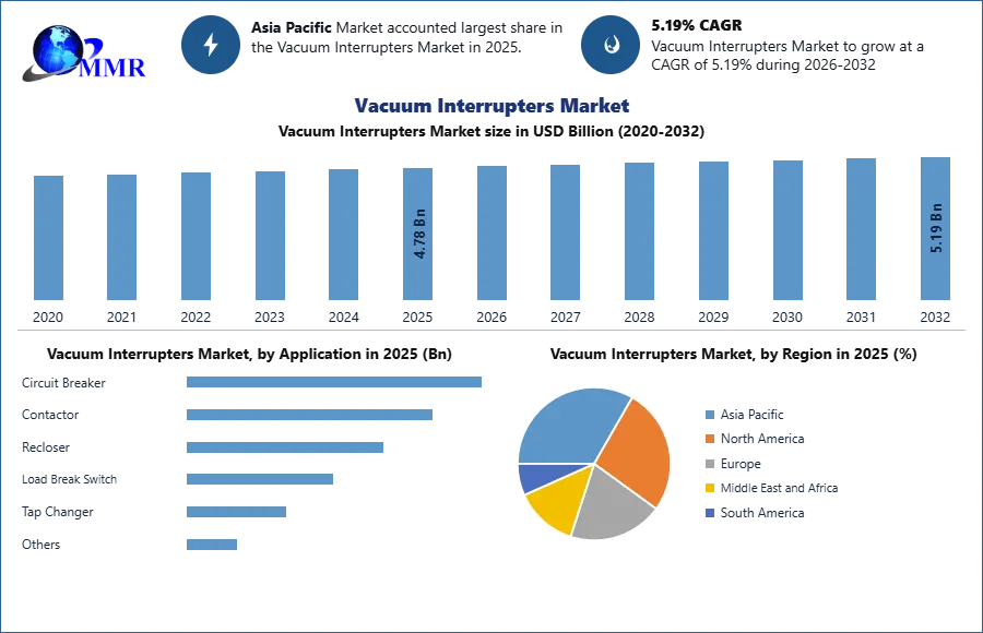 Global Vacuum Interrupters Market size was valued at US$ 4.78 Bn in 2025 and expected to reach US$ 5.19 Bn by 2032 at a CAGR of 5.4 % during the forecast period.
