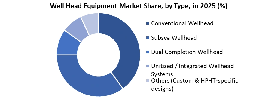 By Type: The market is divided into Conventional Wellhead, Subsea Wellhead, Dual Completion Wellhead, Unitized / Integrated Wellhead Systems, and Others (Custom & HPHT-specific designs). Among these, the Conventional Wellhead segment held the largest market share in 2025 due to its cost-effectiveness, simplicity, and reliability in onshore applications. These wellheads are widely used in mature oil fields and less complex environments, making them the preferred choice for many onshore oil and gas operators. Conventional wellheads are particularly popular in low-pressure fields, offering ease of installation and maintenance, which are crucial for maintaining operational efficiency in production fields.The Subsea Wellhead segment is the fastest-growing in the Wellhead Equipment Market, projected to grow at the highest annual growth rate through 2032. This growth is driven by the rising demand for offshore oil and gas exploration, particularly in deepwater and ultra-deepwater fields.