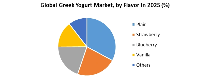 Based on Product, the whole milk segment for the Greek yogurt market was the largest in the year 2025. Whole milk Greek yogurt is the old and traditional type of yogurt. Made from whole milk, this whole milk yogurt is higher in fat content and provides a rich flavor. Whole milk is also recognized as a valuable and good source of calcium and protein with essential minerals and vitamins for our bodies. Consumers increasingly favor and prefer high-protein food sources and Greek yogurt with whole milk is considered to be the best source of protein. The Greek yogurt manufacturing companies are developing new flavors in whole milk Greek yogurt products to spread across a wide range of consumers.The other types of Greek yogurt are low-fat and non-fat yogurt. Low-fat Greek yogurt is the second most consumed type of yogurt and the demand is rising for the health benefits of more low-fat healthy options in food products. A growing consumer base with healthier preferences in food products demands reduced-fat options, low-fat options Greek yogurt options to lose weight. The yogurt manufacturers are increasing in the technological advancement for making low-fat Greek yogurt with added new flavors. Non-fat Greek yogurt is rising in demand which is made of fat-free milk, which gives the product the lowest fat content. These are a very good and rich source of protein and are mostly preferred by professional bodybuilders in the fitness industry, these products are good choices for controlling weight. Based on Flavor, strawberry flavor is the most demanded and used flavor segment in the Greek yogurt market. The Greek yogurt in the strawberry flavor comes with natural ingredients and real pieces of fruit. The rising health-conscious consumer base is aware of the nutrition provided by fruit, demands, and consumes more real fruit-based yogurt. The strawberry Greek yogurt flavors also come in a variety of products such as plain strawberry, sweetened strawberry, strawberry swirl, and strawberry with granola. Greek yogurt manufacturers are focusing on the innovation and development of new strawberry-based Greek yogurt with high protein content. The other flavors such as blueberry and vanilla are rising in use due to the difference and variations in the taste of yogurt. Blueberry being a little bit sour and tangy in taste comes in different levels of sweetness. Vanilla is a classic flavor and vanilla Greek yogurt is rich in flavor and creamy in texture. This vanilla yogurt is used with fruit, nuts, and granola. The strong appeal by consumers for healthy and protein-rich foods is growing the demand for the Greek yogurt market.