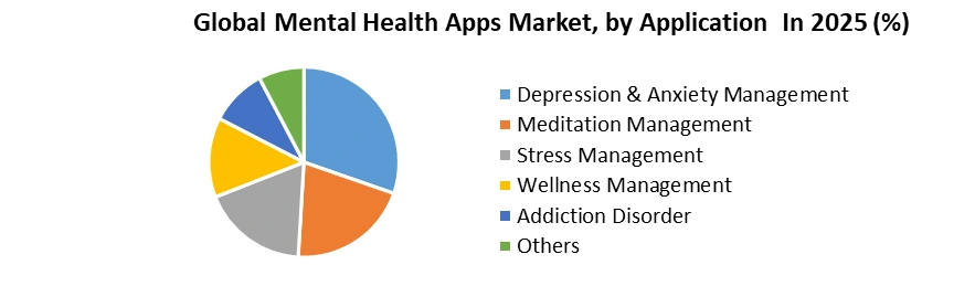The trend for the global Mental Health Apps Market is the integration of Teletherapy and Live Support. As technology continues to advance, many mental health apps are incorporating features that allow users to connect with licensed therapists and counselors through video calls, chat sessions, or voice calls. This trend addresses the need for personalized and real-time support, offering users the opportunity to engage in virtual therapy sessions from the convenience of their devices. The integration of teletherapy not only expands the range of services provided by these apps but also enhances their credibility and effectiveness. This trend reflects the evolving landscape of mental health care, where digital platforms are becoming increasingly integrated with traditional therapeutic approaches to provide h olistic support for individuals’ mental well-being. Top Mental Health AppsThe global Mental Health Apps Market is divided into platform type, subscription type, accessibility and engagement, application and region. Based on the region, the market is analyzed into North America, Europe, APAC, South America and MEA. Based on the Platform Type: The iOS segment dominated the largest Mental Health Apps Market share with 51.23% in 2025. This segment is classified into Android, iOS, and others and is downloadable from the Apple app store. The iOS mobile apps for mental health offer a wide range of functionalities, including mindfulness exercises, mood tracking, cognitive behavioral therapy tools, journaling, meditation sessions, and more. The iOS ecosystem emphasizes user experience, security, and quality control, which align well with the sensitive nature of mental health apps. Such all factors are expected to drive the segment market growth over the forecast period. Based on the Application Type: In 2025, the depression and anxiety management segment held the largest Mental Health Apps Market with a revenue share of 32.15 %. The increasing prevalence of anxiety and depression disorders and growing awareness regarding mental health apps for the treatment of these conditions are some of the major factors supporting the segment’s growth. The Depression and Anxiety Management Apps segment within the Mental Health Apps Market focuses on providing targeted support for individuals grappling with these pervasive mental health challenges. This segment provides several functionalities and features aimed at helping users better understand. However, the stress management segment is expected to grow at the fastest rate during the forecast period.