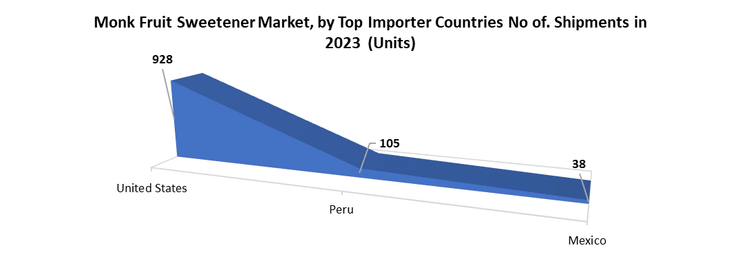 Increasing Demand for Clean Label Ingredients to Drive Monk Fruit Sweetener Market Growth The growing demand for clean-label ingredients significantly drives the growth of the monk fruit sweetener market as consumers demand greater transparency and healthier food options. A clean-label product emphasizes simplicity by showcasing natural ingredients and eliminating artificial additives and preservatives, which has become a major concern for health-conscious consumers. Labels with claims such as "no added sugar," "organic," and "non-GMO" inspire consumer confidence. Monk fruit sweetener, as a natural alternative to plant-based sugar, fits perfectly into this framework. It does not contain artificial additives or preservatives, which is in line with consumer preferences for simpler, natural, chemical-free ingredients. Consumers, especially those with food allergies or sensitivities, are increasingly concerned about additives and are turning to clean products that offer transparency and safety. For instance, monk fruit sweets appeal to people with dietary restrictions, such as diabetics or those following a low-sugar diet, because they offer a natural, calorie-free option without compromising taste. Additionally, the growing focus on sustainability and ethical sourcing is also accelerating the adoption of monk fruit sweeteners. Consumers, especially Millennials and Generation Z, are making value-based purchasing decisions, choosing brands that align with their ethical and health preferences. Monk Fruit Sweetener not only appeals to these values as an ethically sourced natural ingredient but also addresses the growing concerns about food allergies because it is free of common allergens such as dairy, gluten, and soy. As of 2019, more than 200,000 clean products have been launched worldwide, with markets such as the United States and Europe leading the way. This growing global trend towards clean, additive-free products also solidifies the role of monk fruit sweets as the preferred choice in the natural sweetener market, especially as consumers move away from highly processed and artificial sugar substitutes. A recent study on clean-label products in Asian countries, such as India, Indonesia, Japan, Singapore, and South Korea, demonstrates a steady trend toward becoming GMO-free. This shows the change in their traditional food habits. Despite having a more natural and organic approach to their meals, Asians prefer natural organic ways to their meals, they claim that clean-label products help them to adjust their busy lifestyle. With innovation, India is one of the top Asian countries leading the way in the number of product launches that carry the clean label. In 2023 alone, India launched more than 5,000 clean-label products, accounting for 13% of the world. High Production and Extraction Costs One of the primary challenges in the monk fruit sweetener market is the high cost of production. The process of extracting monk fruit sweeteners is complex and involves several steps, including harvesting, drying, and extracting mogrosides, the compounds responsible for the fruit's flavor. This process is labor-intensive and costly, particularly when compared to other artificial sweeteners such as sucralose or aspartame, which are cheaper and easier to produce. Additionally, monk fruit is primarily grown in specific regions of China, which limits its availability and drives up costs due to the logistical difficulties associated with importing the fruit to other parts of the world. These factors make monk fruit sweeteners more expensive than other alternatives, which makes it difficult for both manufacturers and consumers to choose them. Additionally, the agricultural challenges of growing monk fruit contribute to the higher cost. Monk fruit farming is dependent on specific climatic conditions found in selected regions. As a result, production becomes uneven and leads to supply chain disruption. This limited and inconsistent supply will drive up prices, possibly making monk fruit connoisseurs unable to access sugar and other sweeteners. Monk Fruit Sweetener Market: Import-Export Analysis In 2023, the United States emerged as the leading importer of monk fruit sweeteners, with a total of 928 shipments. This significant volume highlights the strong demand for natural sweeteners in the U.S. market, driven by a growing consumer preference for healthier alternatives. Peru followed as the second-largest importer, with 105 shipments, reflecting the country's increasing interest in monk fruit sweetener as part of its expanding health-conscious product offerings. Mexico secured the third position with 38 shipments, indicating a rising demand for monk fruit sweetener in the region, likely fueled by the growing trend towards natural sweetening options in various food and beverage applications.China dominated the monk fruit sweetener export market in 2023, with an impressive 773 shipments. This leadership position highlights China's strong production capabilities and its central role in the global supply chain for natural sweeteners. Thailand followed as a key exporter, with 155 shipments, reflecting its growing presence in the monk fruit sweetener market. The United States ranked third among exporters, with 100 shipments, showcasing its emerging role in the production and export of monk fruit sweetener.