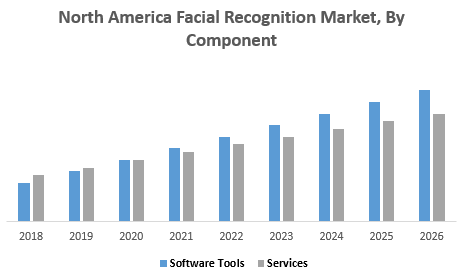 North America Facial Recognition Market is expected to reach US$ 6.11 Bn by 2026, at a CAGR of 15.4% during the forecast period.To know about the Research Methodology :- Request Free Sample Report Facial recognition is a category of biometric software that maps an individual's facial features mathematically and stores the data as a face print. The software uses deep learning algorithms to compare a live capture or digital image to the stored face print in order to verify an individual's identity. The report study has analyzed revenue impact of COVID -19 pandemic on the sales revenue of market leaders, market followers and market disrupters in the report and same is reflected in our analysis. The North America market for facial recognition is segmented into the component, technology, use case, end-use, and geography. Based on a component, the market is divided into software tools, and services. The technology segment for the market includes middleware, facial recognition software, and sdk, databases, analytics solution, modeling and restructuring. By use case, the facial recognition market is divided into access control, emotion recognition, law enforcement, attendance tracking and monitoring. Enterprises, Government, and Others have formed the various end-use areas for facial recognition market. There are numerous applications of facial recognition system as well as software in North America with most of the companies applying it in the USA. Facebook is one such company that is based in the USA and is using facial recognition software for tagging individuals in numerous photographs. With each tagging of an individual in a photograph, the software stores the complete mapping information related to the person’s facial characteristics. The facial recognition technology are also being used for numerous applications in North America. It includes: • Payments: Online shopping and contactless cards demonstrate the seamlessness of modern purchases. FaceTech is one such technology where customers won’t need their card and will be able to make transactions using their facial features as the passcode. • Access and security: Verifying a transaction, facial biometrics are well integrated with physical devices as well as objects. In the place of passcodes, mobile phones along with other consumer electronics can be accessed using the owner’s facial features. • Criminal identification: This is extremely useful as it provides law enforcers additional way of tracking criminals all across the country. The AI equipped cameras are used for tracking the faces of the criminals and helps in easy identification as the law agencies keep a track and update the database. • Advertising: The ability to gather and collate masses of personal information have helped the marketers and advertisers to get closer to their target markets. With correct facial recognition as per age and requirements, the customers are served in a better way, giving them a more personalized experience. • Healthcare: The medical professionals could use facial recognition software to identify illnesses by analyzing a patient’s features. It would help in alleviating the strain to some extent on the medical centers by dropping the waiting lists and streamlining the complete appointment process. North America is one of the major markets for facial recognition globally with US and Canada forming two major regions profiled under the scope of the study. The technological developments along with rising in security concerns have resulted in the higher application of facial recognition software in North America.
