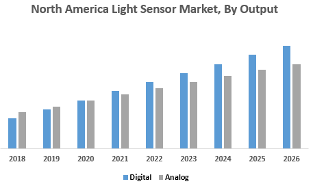 • Proximity Detection • Gesture Recognition • Ambient Light Sensing • Rgb Color Sensing • UV/Infrared Light (IR) DetectionNorth America Light Sensor Market, By Output: