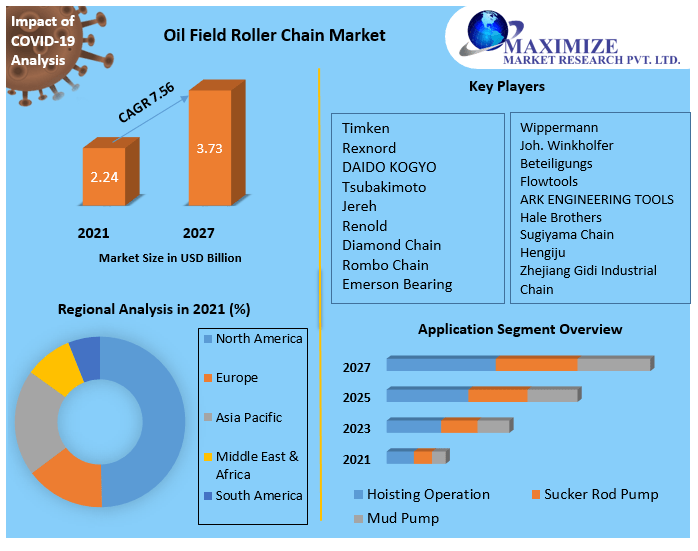 Due to the existence of numerous worldwide and regional companies, the oilfield roller chain market is a highly competitive business. Growing industrialisation is driving up crude oil demand, which is driving market growth. The market for oilfield roller chains is expected to develop as their strength and durability improve. The market is being propelled by rising exploration efforts in both emerging and developed countries. The market, on the other hand, is being challenged by shifting crude oil prices. During the forecast period, the oilfield roller chain market is forecasted to develop at a healthy rate. The considerable growth of this market may be attributed to a number of reasons, including the numerous benefits connected with the usage of oilfield roller chains, rising demand for oil and gas, and increased use of the oilfield roller chain technology by premium manufacturers. The market's growth is forecast to be hampered by fluctuating oil and gas demand, which has been observed in recent years. To achieve a competitive advantage, oilfield roller chain producers have been observed to be focusing on putting innovative technology into the market. They're also attempting to make the equipment lighter and smaller. Rapid industrialization and urbanisation throughout the world has resulted in an ever-increasing demand for gasoline on the market. As a result, the number of exploratory operations carried out by various oil and gas firms has increased significantly, increasing demand for oilfield roller chain throughout the world. These roller chains are crucial for hauling hefty things during exploration. The single-stranded and multi-stranded chains are mostly used for hosting and mud pump drive operations. Several key manufacturers are investing in producing higher-quality roller changes with more mechanical strength and durability, which is forecasted to promote market growth in the near future. The exploration and drilling activities are extremely important to the oilfield rollers. The rising cost of drilling and exploration will be exacerbated by the shifting crude oil prices. This might stifle the oilfield roller chain market's growth.Oil Field Roller Chain Market Segment Analysis: