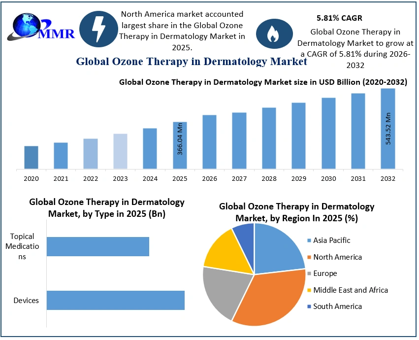 Ozone Therapy in Dermatology Market Size by Type, Application, End Users, Region – Segment-Level Market Assessment, Growth Opportunity Analysis, Competitive Mapping & Forecast to 2032