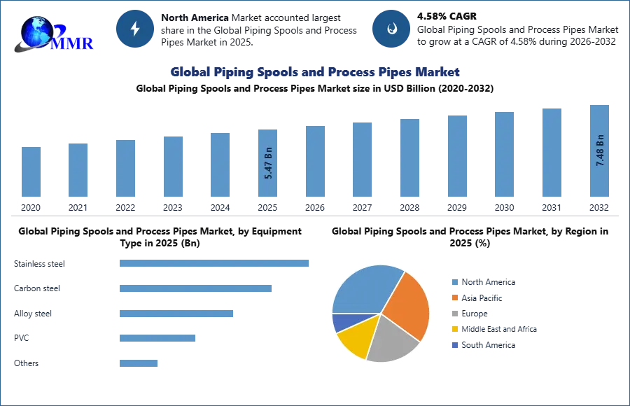 The Piping Spools and Process Pipes Market size was valued at USD 5.47 Billion in 2025 and the total Piping Spools and Process Pipes Market revenue is expected to grow at a CAGR of 4.58% from 2026 to 2032, reaching nearly USD 7.48 Billion by 2032.