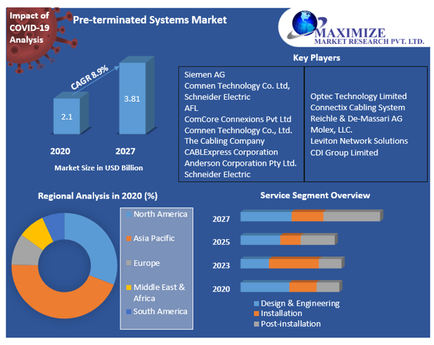 Factory-manufactured cables and modular components with pre-attached connectors include in pre-terminated cabling systems. Cables, connectors, brackets & adapters, pigtails, patch strings, patch sheets, cassettes and modules, and fiber enclosures are all included in pre-terminated systems. These components have been thoroughly tested, certified, and are ready to use in a network.Pre-terminated Systems Market Dynamics: