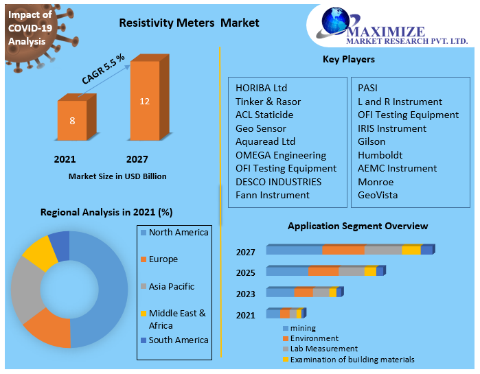 Resistivity Meters Market was valued at US$ 8 Bn. in 2021. Global Resistivity Meters Market size is expected to grow at a CAGR of 5.5% through the forecast period.Resistivity Meter Market Overview: