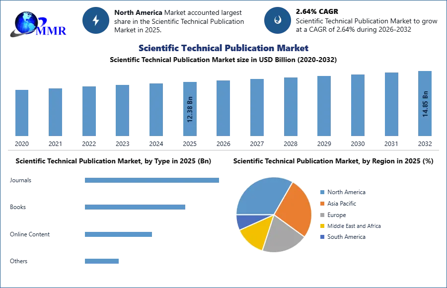 Global Scientific Technical Publication Market was valued at US$ 12.38 billion in 2025 and the total market is forecasted to grow at a CAGR of 2.64% from 2026 to 2032 reaching nearly US$ 14.86 billion by 2032.