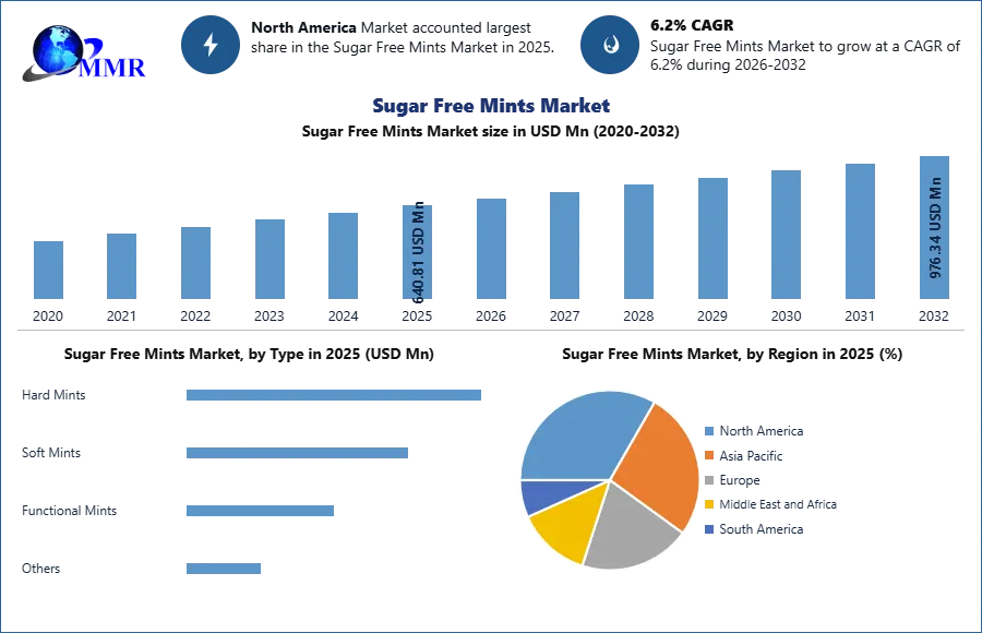 The Global Sugar Free Mints Market size was valued at USD 640.81 Million in 2025 and the total Sugar Free Mints revenue is expected to grow at a CAGR of 6.2% from 2026 to 2032, reaching nearly USD 976.34 Million.