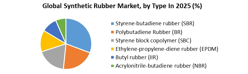 The synthetic rubber market is primarily driven by the strong global demand for automotive tires, supported by rising vehicle production and the expansion of electric mobility. Synthetic rubber types such as SBR, BR, and NBR are essential for producing high-performance tires due to their abrasion resistance, flexibility, and durability. According to the International Organization of Motor Vehicle Manufacturers (OICA), global vehicle production reached around 93.5 million units in 2023, reflecting steady recovery in automotive manufacturing. Tire manufacturers like Bridgestone, Michelin, and Goodyear are scaling production to meet increasing replacement and OEM tire demand. Additionally, the EV sector is accelerating market growth, as electric vehicles require low-rolling-resistance tires to improve battery efficiency. For instance, EV sales crossed 14 million units in 2023, with China contributing nearly 60% of global EV demand, directly boosting demand for advanced synthetic rubber formulations. Growth in commercial vehicle fleets for logistics, especially in India, China, and Brazil, further strengthens consumption. This sustained automotive momentum, combined with performance-driven tire innovations, continues to fuel consistent demand for synthetic rubber worldwide.